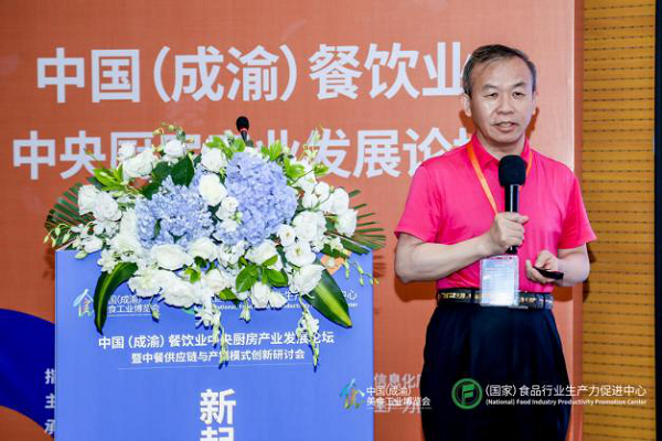 同期,由中国食品工业(集团)有限公司联合食品行业生产力促进中心共同主办的2021中国(成渝)餐饮业中央厨房产业发展论坛暨中餐供应链与产销模式创新研讨会在重庆经济和信息化委员会、四川省经济和信息化厅指导下隆重召开。会议邀请了重庆经信委消费品处处长聂艳、世界中餐业联合会监事会主席武力、四川旅游学院校长卢一、中国食品工业(集团)有限公司副总经理及食品行业生产力促进中心主任温凯、重庆烹饪协会团快餐委主任赵雪兵、食品行业生产力促进中心副主任袁超、益海嘉里中央厨房项目部研发总经理及西安丰厨项目总经理俞宝明、西门子(中国)有限公司食品饮料行业总监曹宗涛、蜀海供应链蜀海创新体验中心及蜀海创新联盟负责人王境波、上海绝配柔性供应链管理有限公司副总经理刘辉、瑞仙贸易(上海)有限公司市场总监赵亮、北京多来点信息技术有限公司运营部总监汪丽敏、北京六位仙集团总经理张彦等领导、嘉宾做会议致辞或主题分享。本次论坛以“新起点·新希望”为主题,针对中央厨房产业发展、中餐供应链及产销模式进行了深度探讨,引发了广泛关注与共鸣,共吸引了中央厨房及餐饮业相关专业人员200余人。