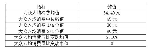 在调研企业中,大众人均消费均值为64.49元,中档人均消费均值为129.56元,高档人均消费均值为199.63元。疫情期间,人们对于健康和安全更加关注,消费升级仍在持续,大众消费、中档消费和高档消费同比增长幅度分别为2.16%、1.67%和0.55%,其中大众消费引领增长。