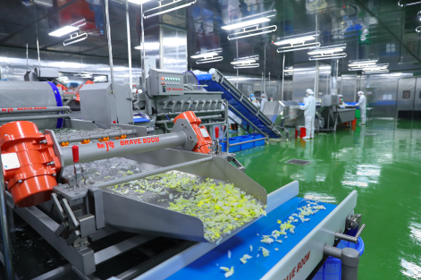 在净菜生产车间,一台台全自动的净菜清洗设备正高速运转,一筐筐新鲜的时令蔬菜有序地进入流水线,很快便被清洗得干干净净。