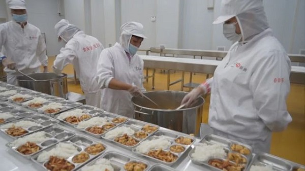 这个中央厨房共设置有检测、分拣、粗加工、切配、烹饪、面点、分餐等10大功能区,内部配备有热风循环高温消毒柜、餐具清洗烘干线、自动蒸饭线等30多种符合国家质量标准的先进餐厨设备,从根本上保证饭菜的质量、卫生、安全。