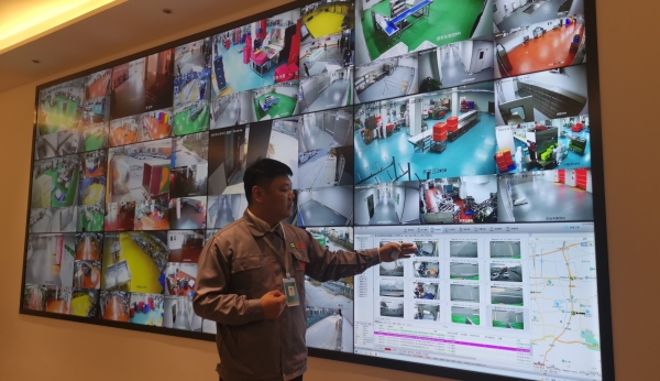 进入历享央厨,记者第一站就来到了监控室,这里还有24小时监控保障,硕大的监控屏上,清晰地显示出饭菜加工的每一个环节。