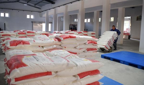 图为供应商将检测合格的面粉入库。东海县委宣传部供图