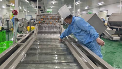 据悉,净菜生产车间使用的高端自动洗切设备,全程使用冷却净化水来进行水触媒农残分解,确保食品100%安全。经过前期处理的各类蔬菜,进入净菜生产车间后,依次经过清洗、切割、灭菌处理、保鲜后,按照订单统一分装,再装上冷链配送车等待配送。