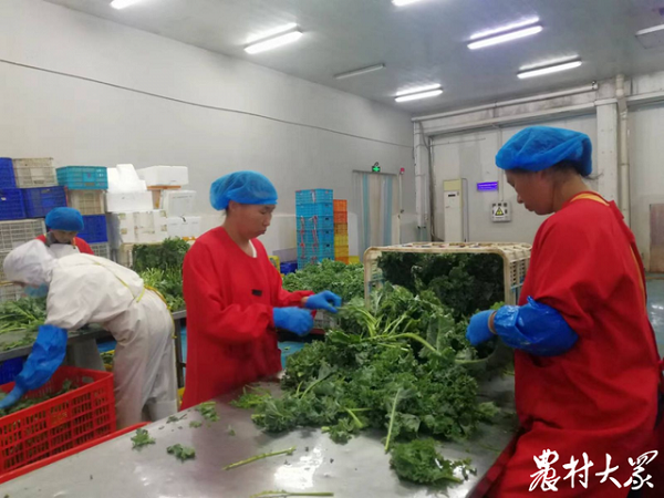 “净菜加工,一下就拉长了当地的蔬菜产业链。”吴建峰介绍说,“另外,为保证稳定的原料供应,我们仅在孙集镇及周边就建立了4000多亩的基地,并与当地农户签订合同,建立了种、收、销一体化利益链接机制,基地种植户只管按标准把菜种好就行了,其他的事基本不用操心。”