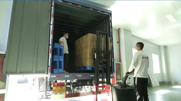 而在出货一号仓库口,工作人员正忙着装车,861件共13792袋“黄果树三碗粉”将通过深圳宝安区海关出口到美国。