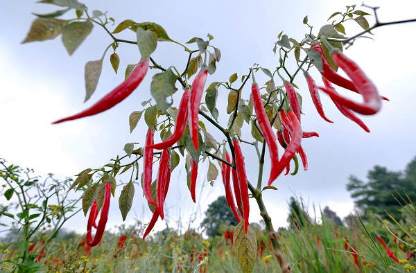 贵州地处云贵高原,有着“一山有四季、十里不同天”的气候特征,山地特色优势明显,奇妙的纬度、适宜的高度、有利的温度、宝贵的湿度、难得的浓度,神奇“五度”的有机融合,形成了种类丰富、品质优良、适应性广的辣椒品种资源,以朝天椒、小米椒、皱椒、草莓椒等代表的贵州辣椒,一不小心就成了辣椒界的“天花板”,但是“品味温醇、香辣协调”才是贵州辣椒真正的骄傲。在黔中,贵阳的花溪辣椒状若牛角,色泽深红,尾部还带有一个小弯钩,最显著的特点是它醇厚的香味,花溪辣椒肉质肥厚且富含氨基酸,因而香气十足,甚至被称为“辣椒中的调味剂”,令人尝之难忘。