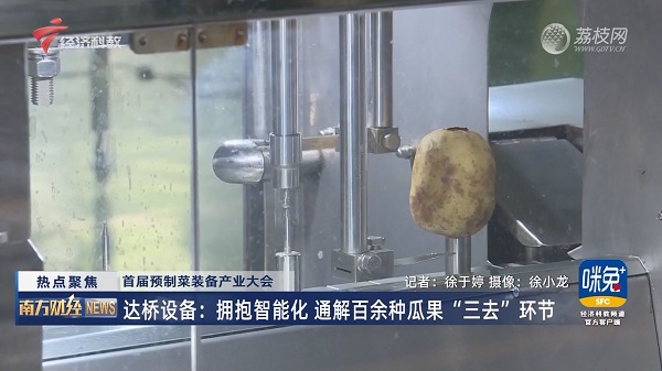 例如,在达桥设备的车间里,随着机器开始运作,硕大的果实开始飞速旋转,一颗柚子在刀片下不过十几秒钟便被“脱”去了外衣,从机器另一端滑出。这样一台削皮机每小时能处理柚子500个,可替代约10名工人。