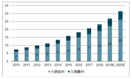 2018年火锅调味料的市场规模为237亿元(火锅底料194亿元,火锅蘸料43亿元),预计到2020年火锅调味料的市场规模将达到310亿元(其中火锅底料255亿元,火锅蘸料55亿元),复合增长率达15%。目前火锅底料的主要销售渠道为家庭消费及餐饮消费,分别占比50.1%,46.1%。