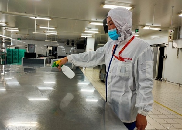 色香味俱全是对地面餐食的评价,而在航食领域,安全洁净永远是第一位的,所以在这个“特殊”的厨房,绝不允许有任何尘埃。从选定供应商到食物验收、加工、分装,再到运输,每一个环节都要保证干净和卫生。