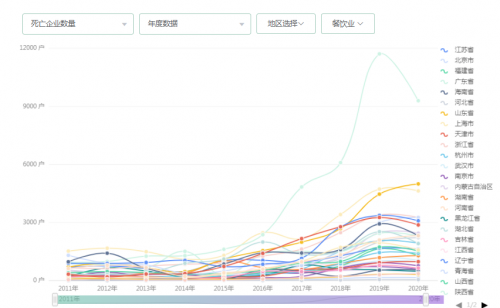 2020年中国的餐饮行业受到了极大的影响,疫情的发生让餐饮业几乎停摆,现金流断裂、无法复工等造成餐饮企业陷入困境。据国家统计局数据显示,2020年全国餐饮收入 39527 亿元,同比下降 16.6%;其中,限额以上单位餐饮收入8232亿元,同比下降14%。“断崖式”的骤降远超过 2003年“非典 SARS”对餐饮业的影响。同时,餐饮行业活跃度有所下降,据人民数据(国家大数据灾备中心)资产服务平台数据显示,2020年中国餐饮行业新增企业数量总计113263家,比2019年减少7253家,企业新增数量下降了6.02%。