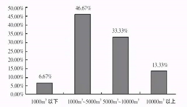 从中央厨房投资额来看,投资额在1000万以下的企业有8家,占被调查企业总数30.77%;中央厨房投资额在1000万元—5000万元的企业有16家,占被调查企业总数的61.54%;中央厨房投资额在5000万元以上的企业有2家,占被调查企业的7.69%。可以看出,投资额在1000万元—5000万元的企业占握了半壁江山。