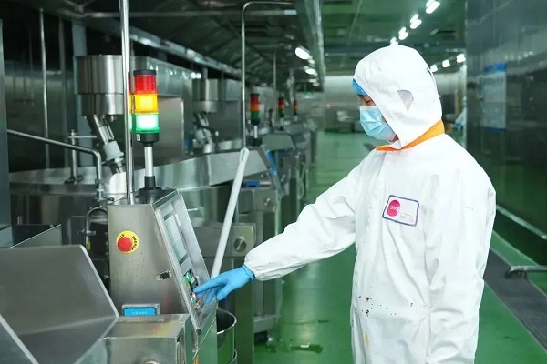 走进新翔集团天津中央厨房生产车间,多条生产线正开足马力、高速运转,品种多样的预制菜打包装箱,准备运往全国各地。